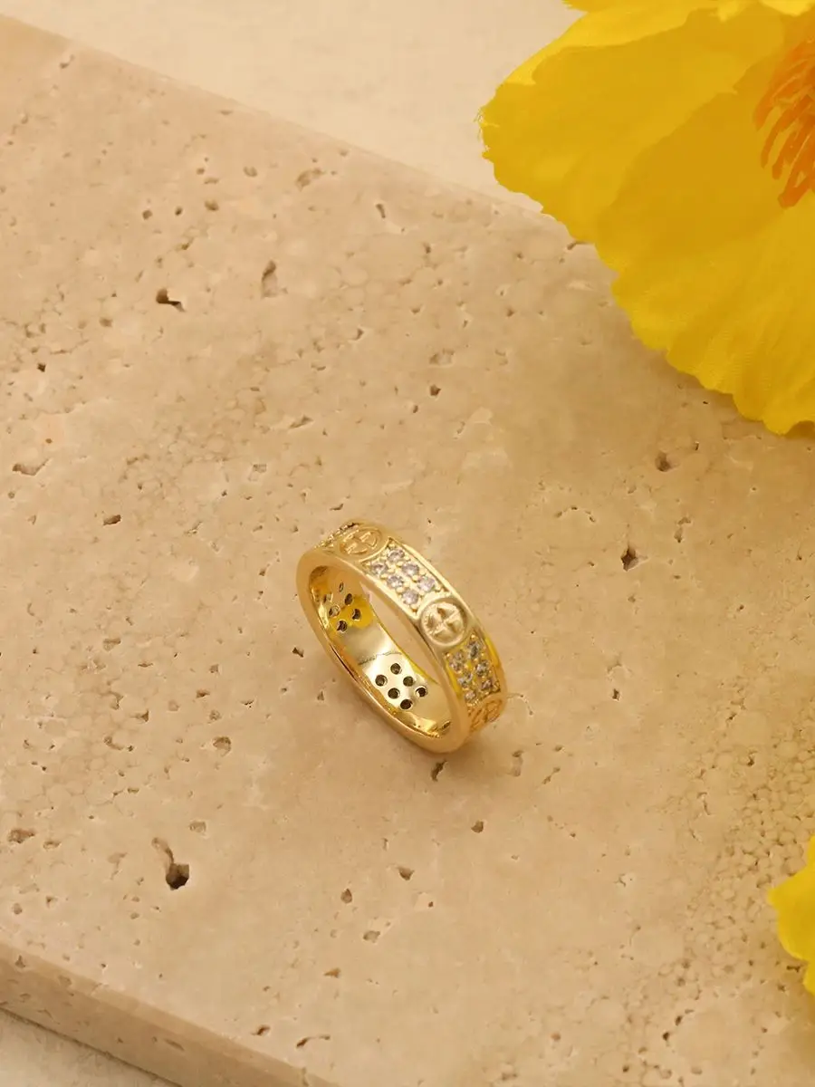 Luckacco 1 Piece Hot Selling Men Inlaid Zircon Classic Gold Color Rings For Women Rings Gift Jewelry