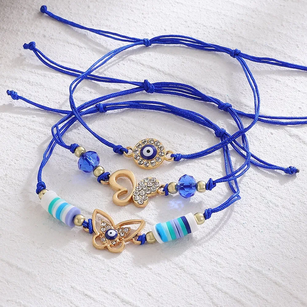2025 New Design : 3Pcs Turkish Lucky Evil Eye Palm Butterfly Bracelets