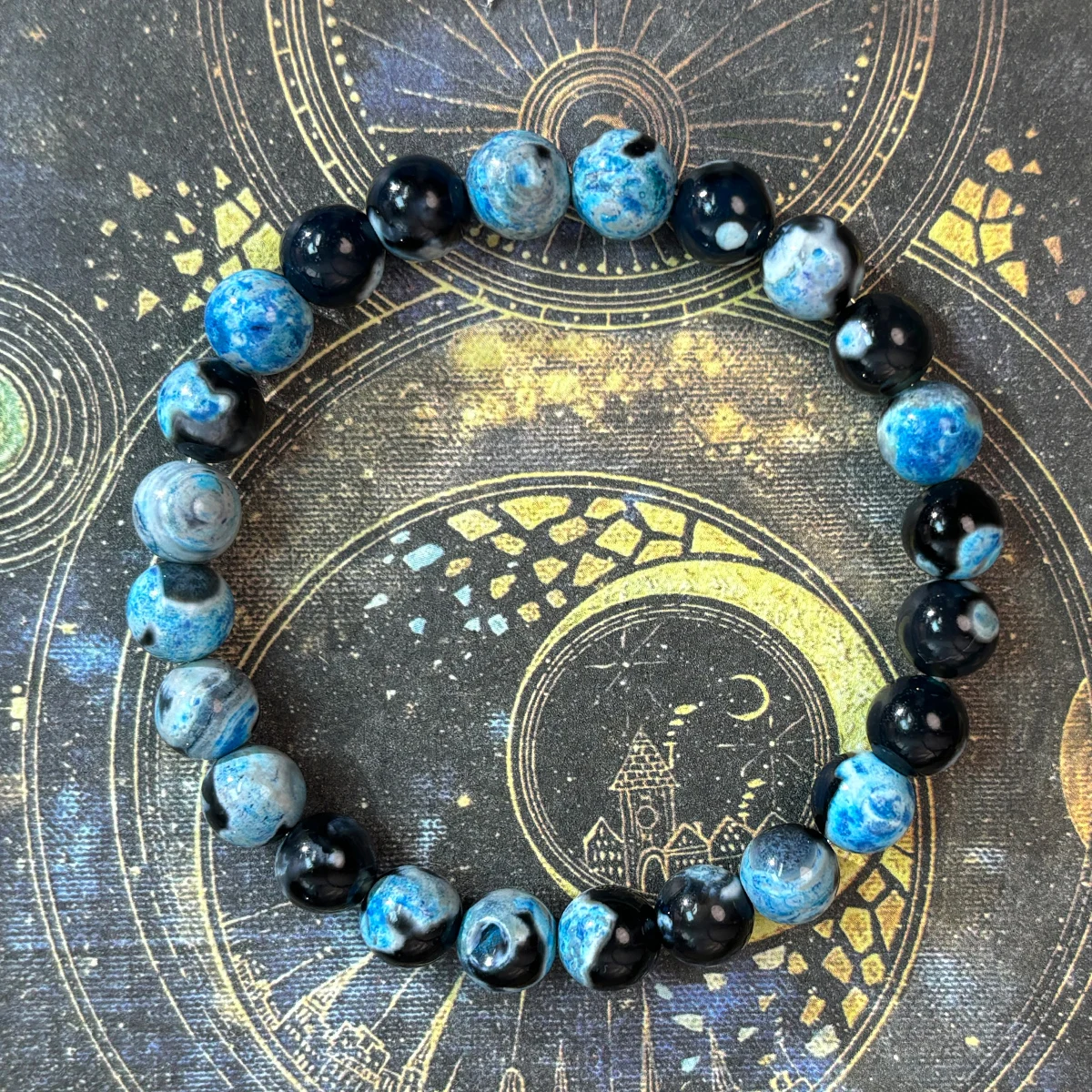 Luckacco 8mm Blue Fire Agate Bracelet - Natural Relaxation and Mental Clarity, Perfect Gift for Family and Friends