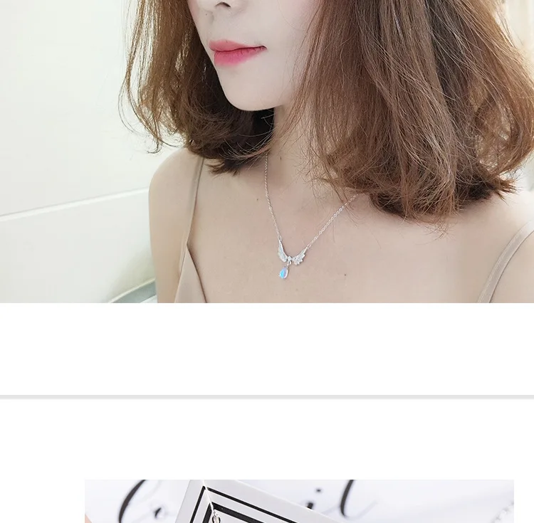 Luckacco 925 Sterling Silver Jewelry Wing Water Drop Crystal Chain Necklaces With Pendant For Women Elegant Accessories