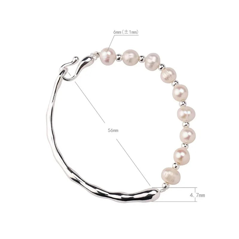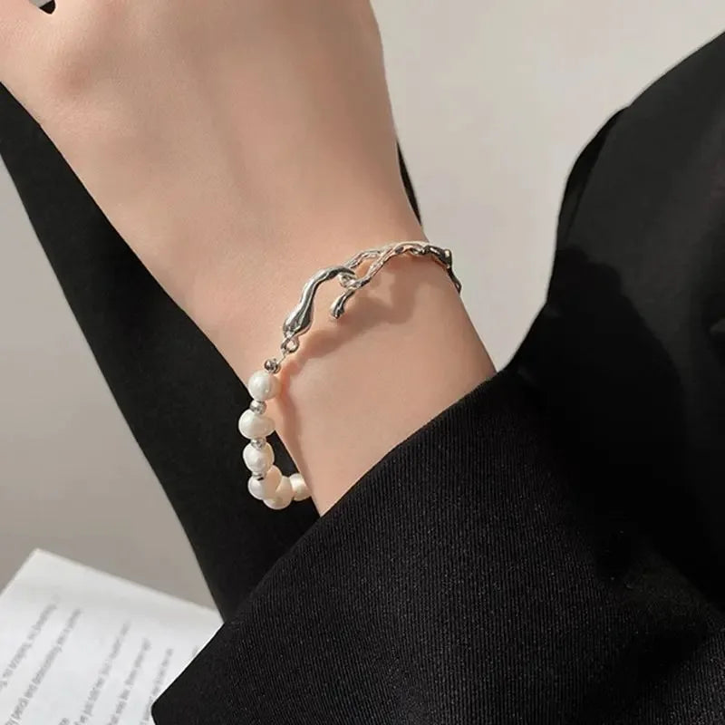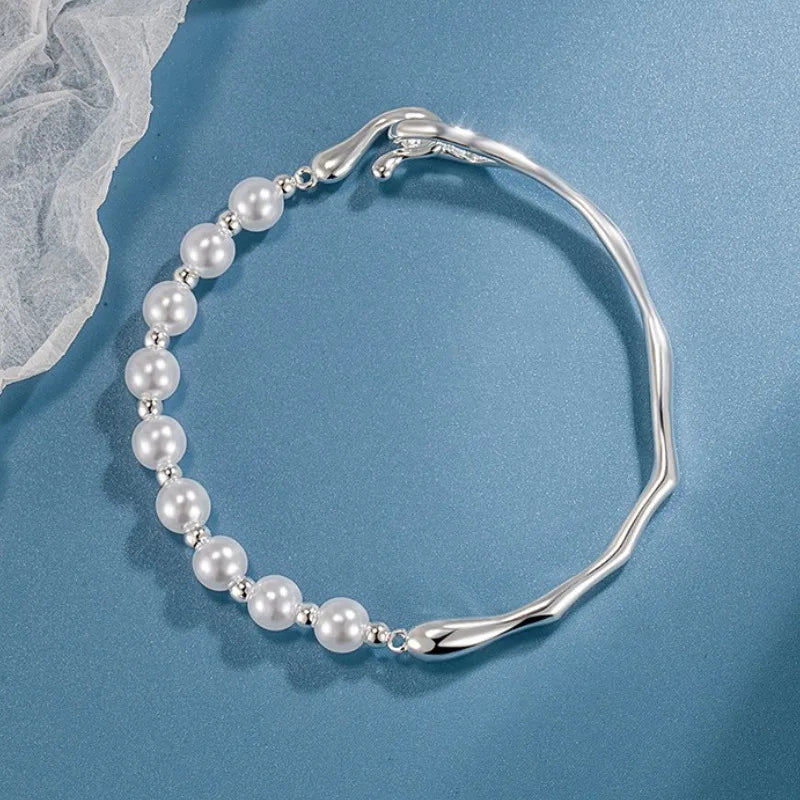 Luckacco 925 Sterling Silver Pearl Beads Bracelet for Women Girls Vintage Irregular Metal Charm Bangles Luxury Fashion Party Jewelry Gift