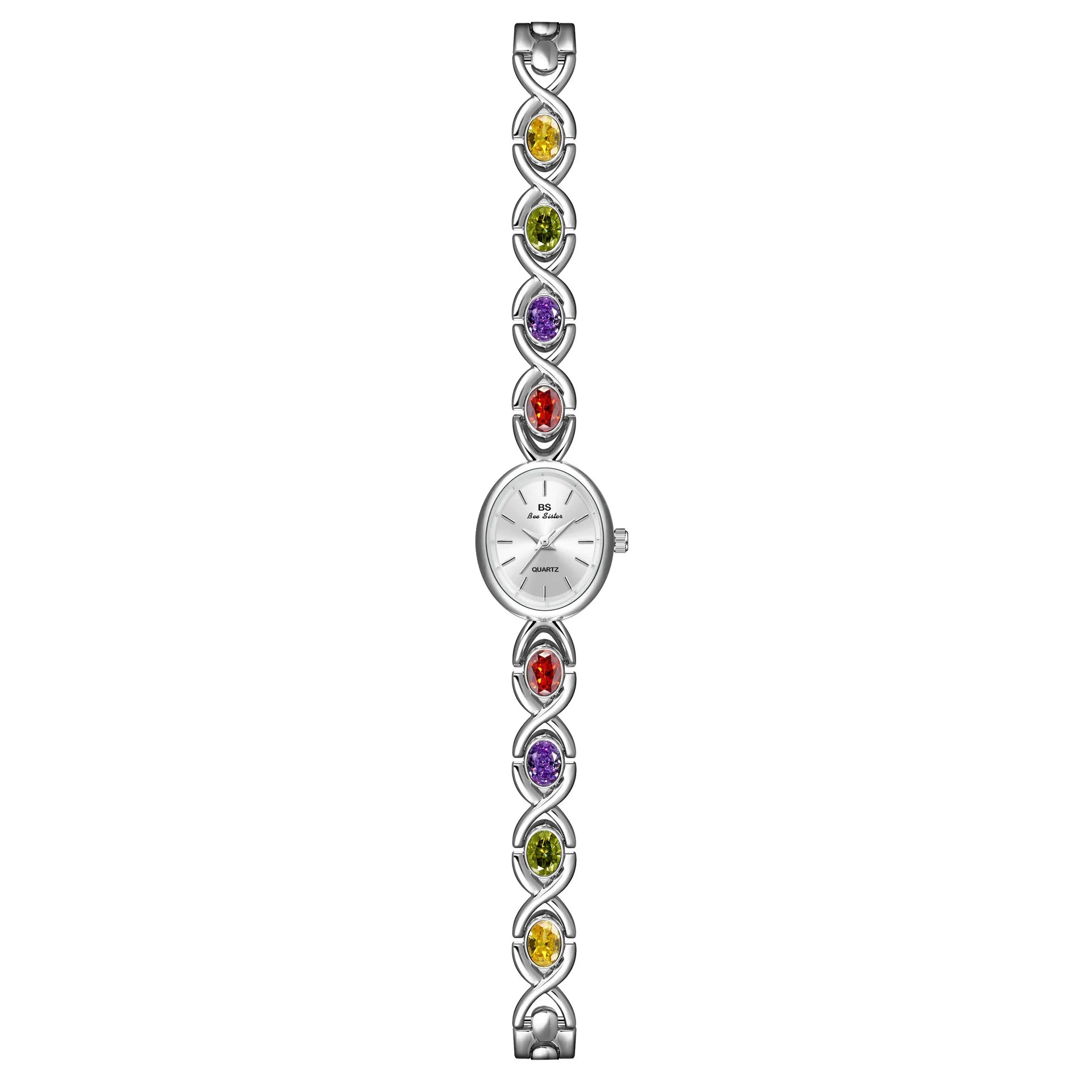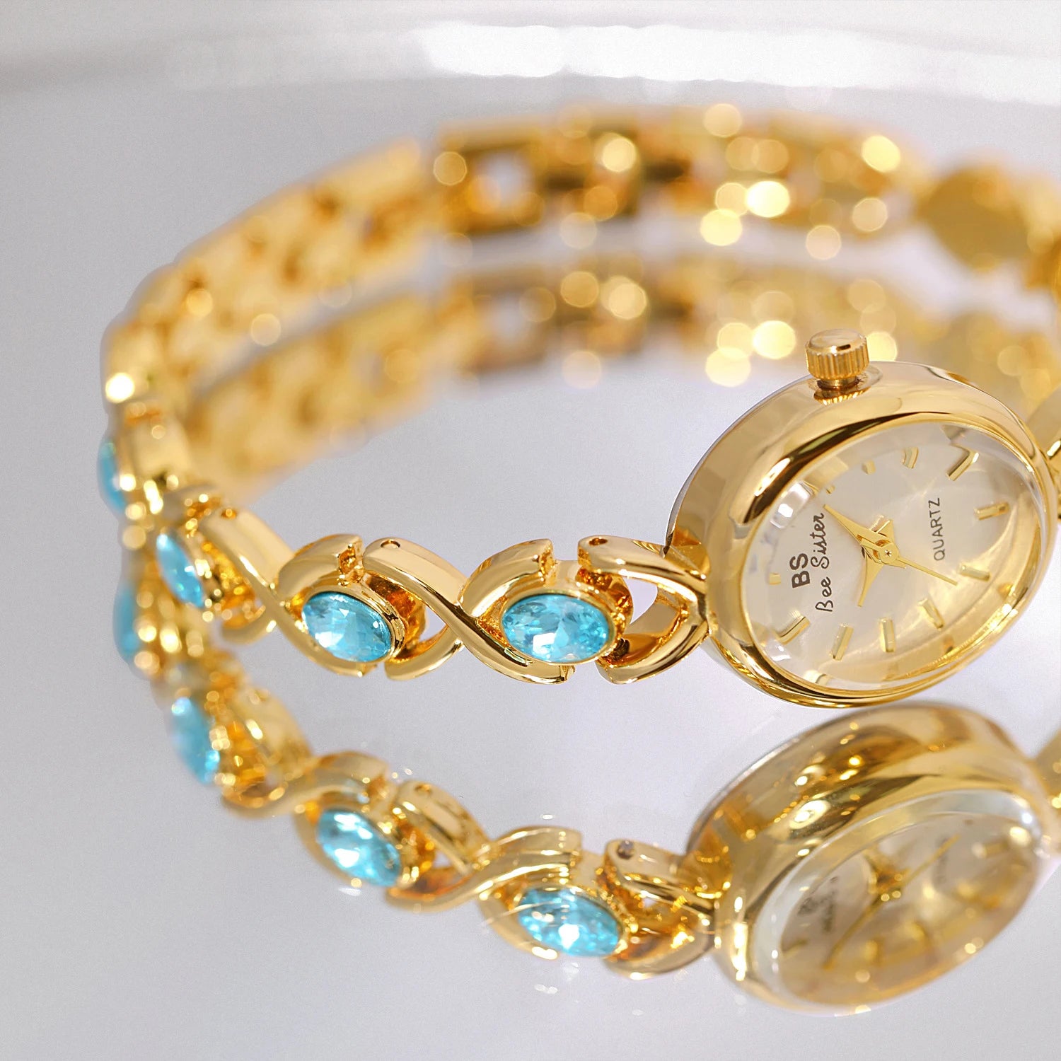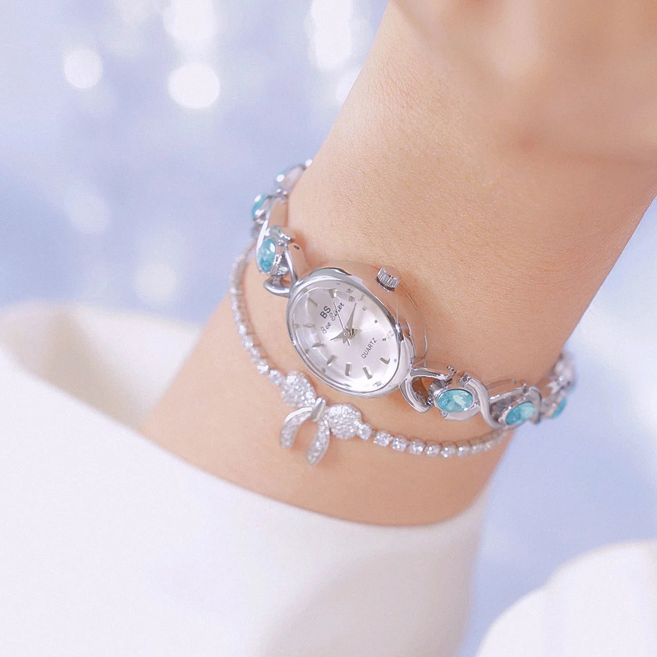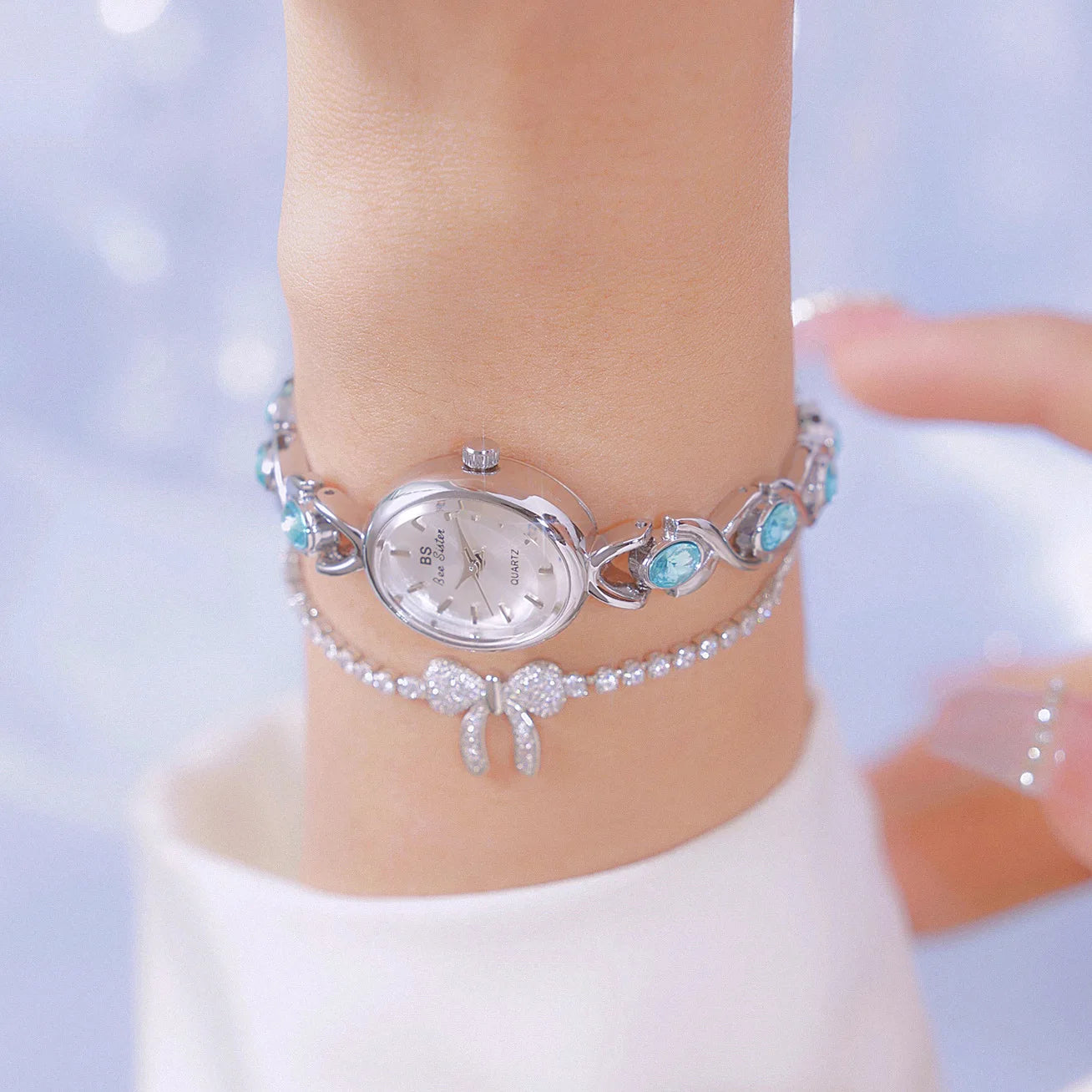 Luckacco Blue Jewel Oval Bracelet Watch Luxury Crystal Quartz Watches For Woman Vintage Gold Silver Jade Wristwatch Gifts For Women