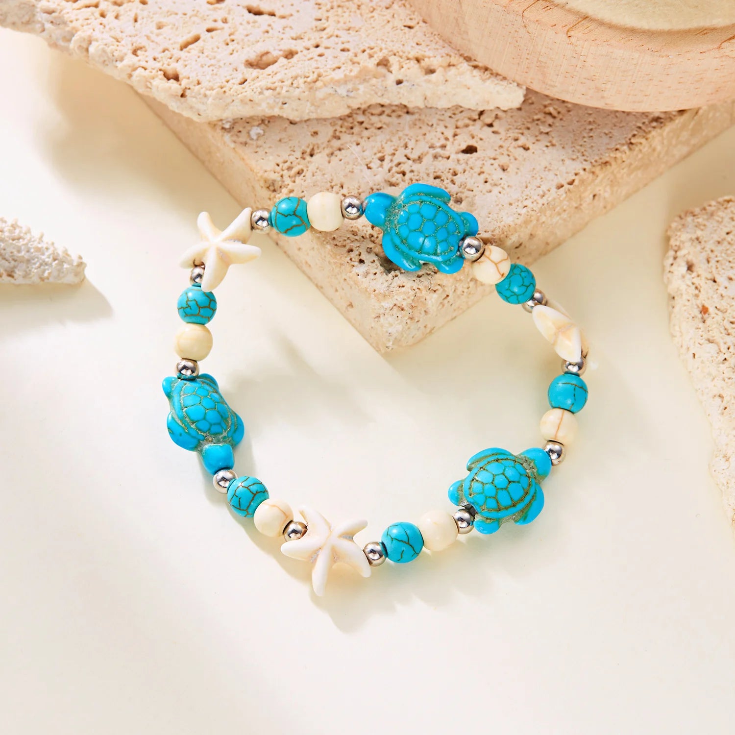 Luckacco Bohemian Imitation Shell Beads Bracelet For Women Sea Star Turtle Woven Rope Bracelet Handmade Friendship Beach Holiday Jewelry