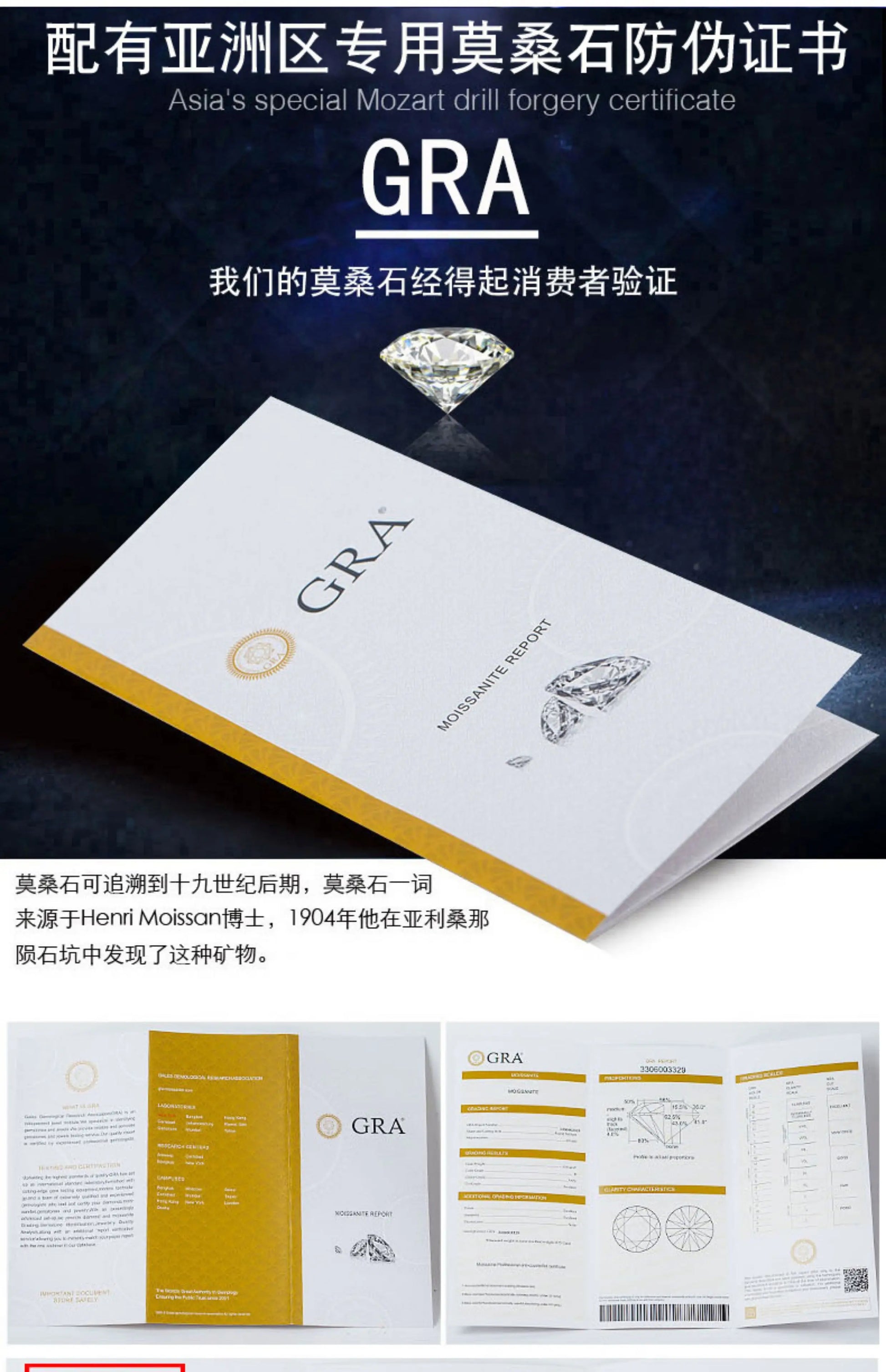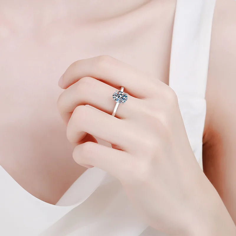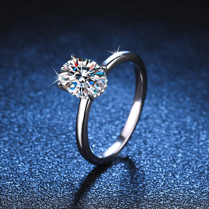 Luckacco D color moissanite ring pigeon egg 18K gold inlaid 2-carat row ring wedding ring moissanite ring platinum PT950 imprint