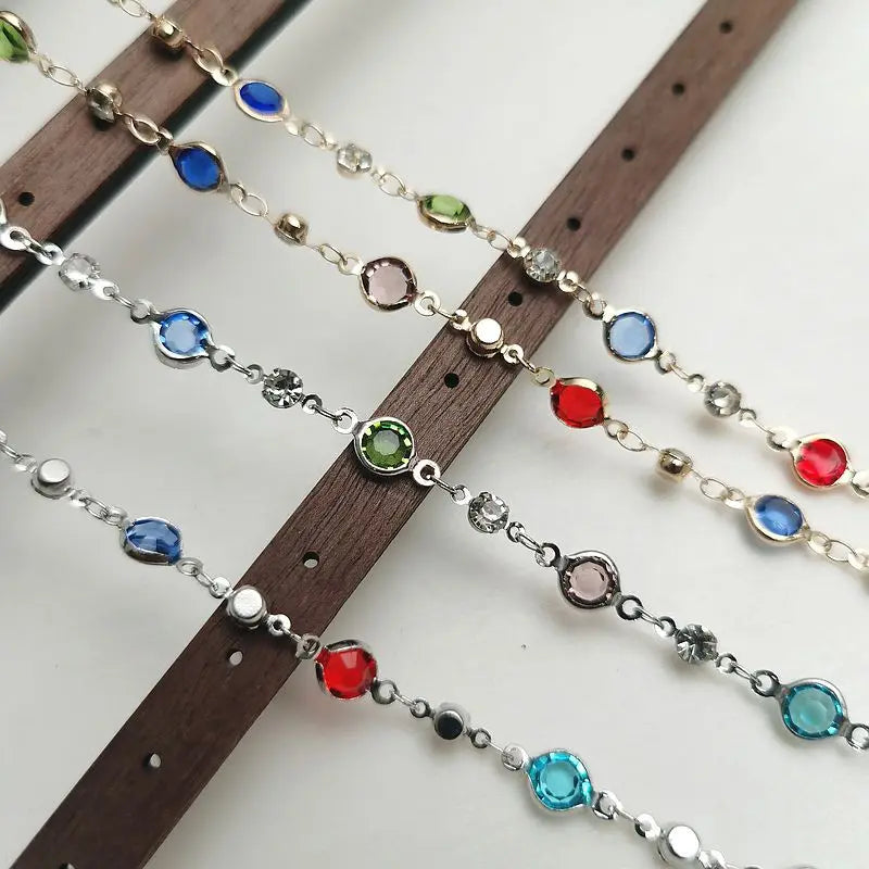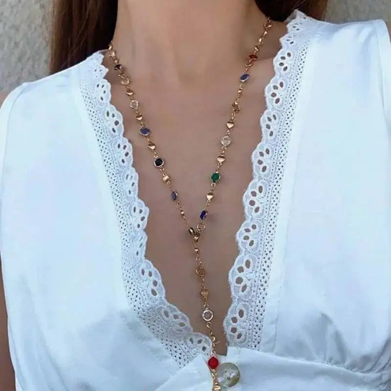 Luckacco Fashion Colorful Crystal Chain Necklace for Women Simple Silver Color Long Y-shaped Clavicle Chain Necklace Party Jewelry Gifts