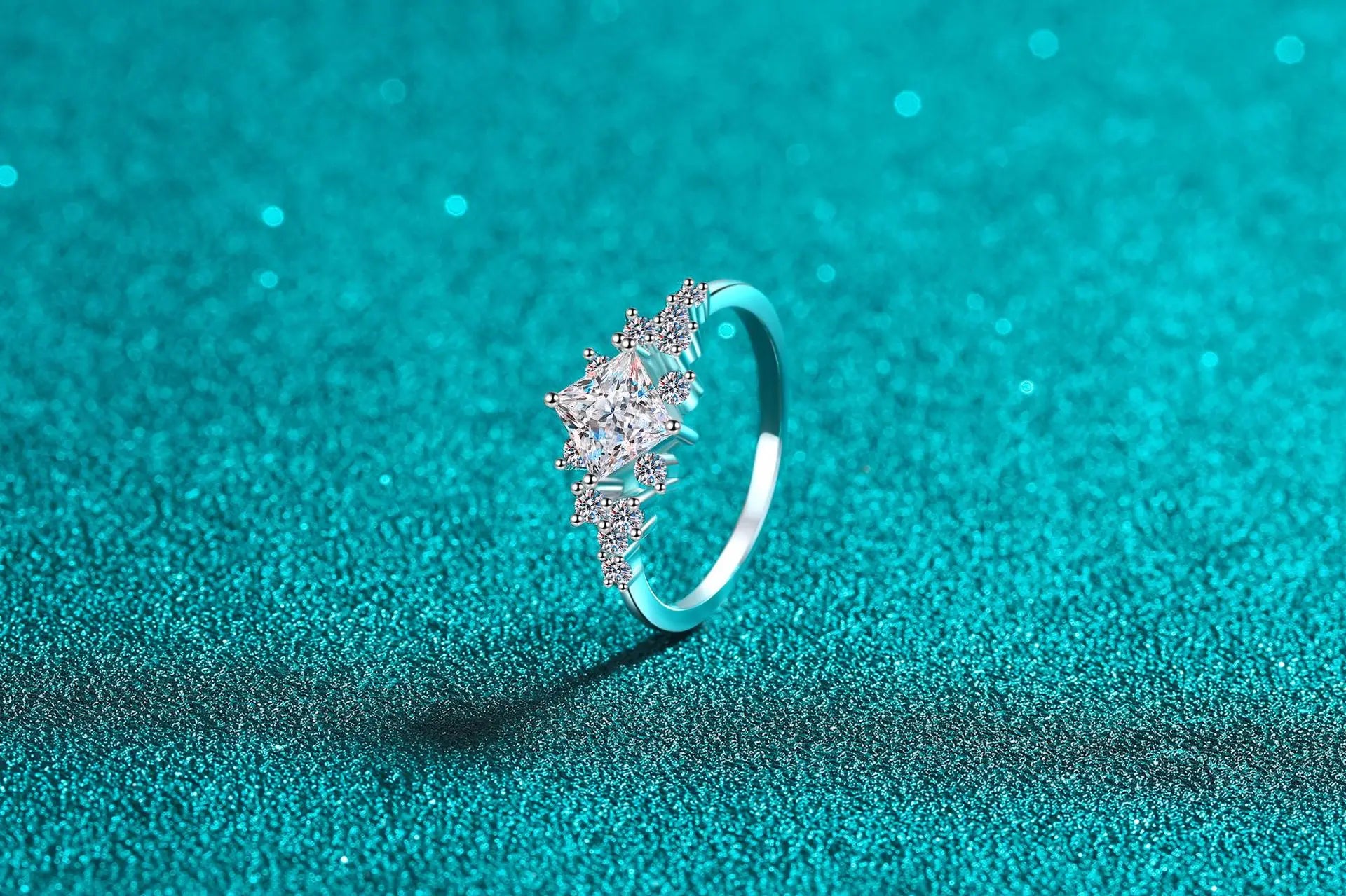 Luckacco Luxury 18K white gold wedding ring 1ct D color real moissanite square geometric design ring exquisite women's jewelry