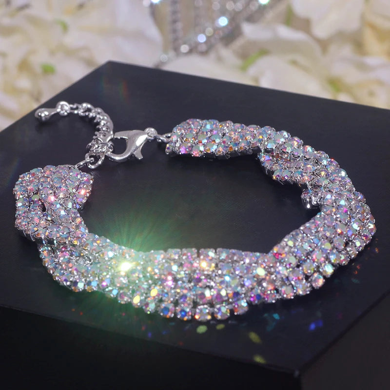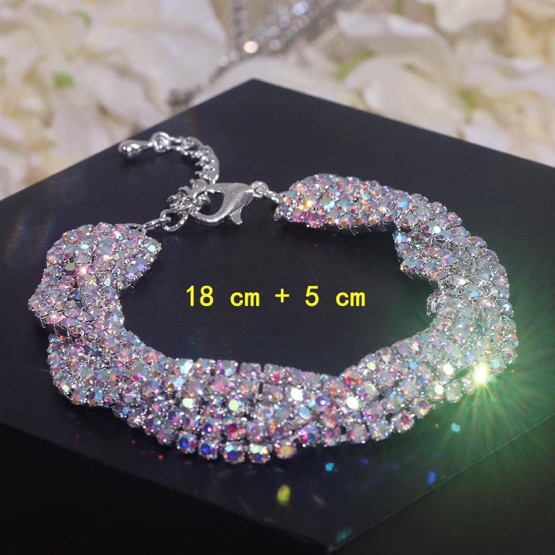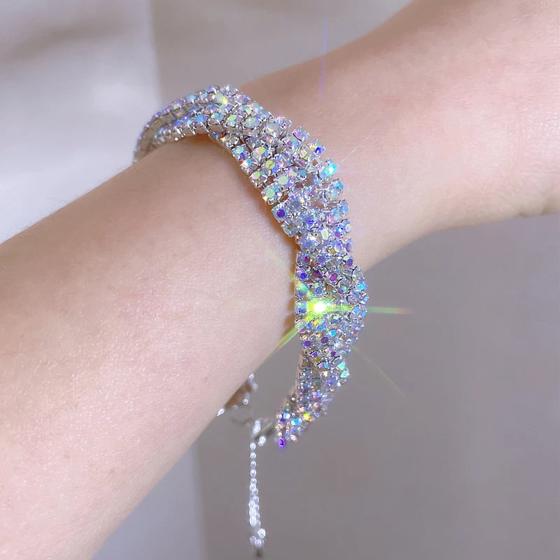 Luckacco Luxury Shining Colorful Rhinestone Bracelet for Women Adjustable Charm Silver Color Bracelet Wedding Bracelets & Bangles Jewelry