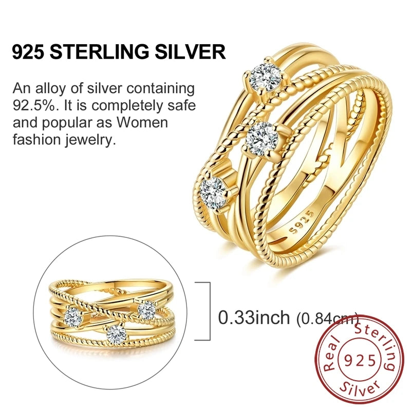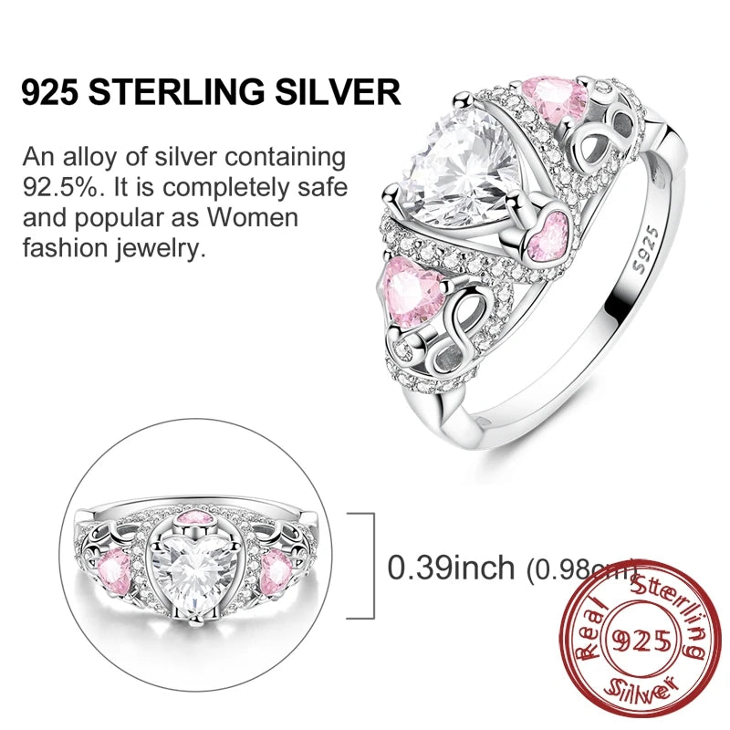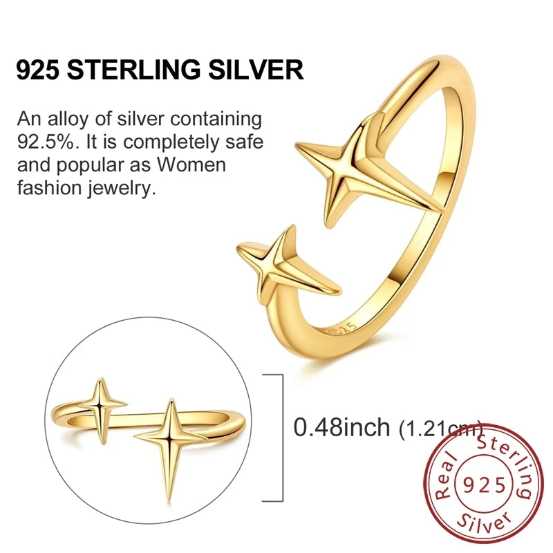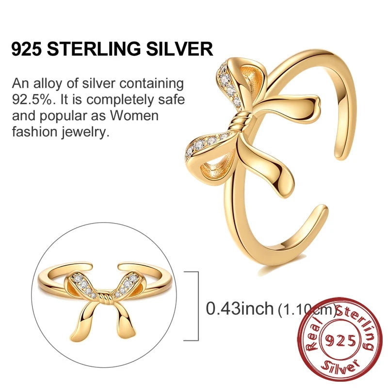 Luckacco New 925 Sterling Silver Rings Gold Heart Bow Adjustable Open Closed Ring Suitable for Women Stacking Ring Fashion Jewelry Gift