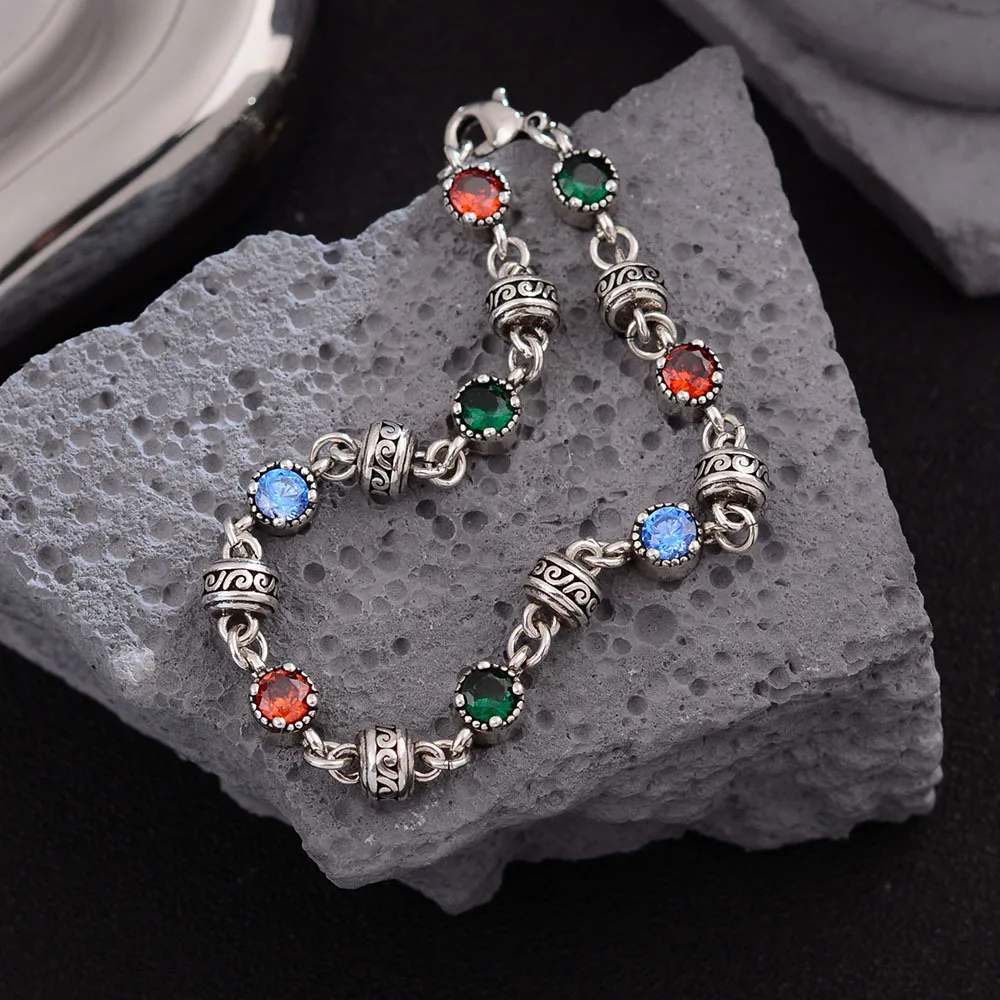 Luckacco New Arrival Trendy Colorful Crystal Thai Silver Female Bracelet Jewelry For Women Birthday Gifts