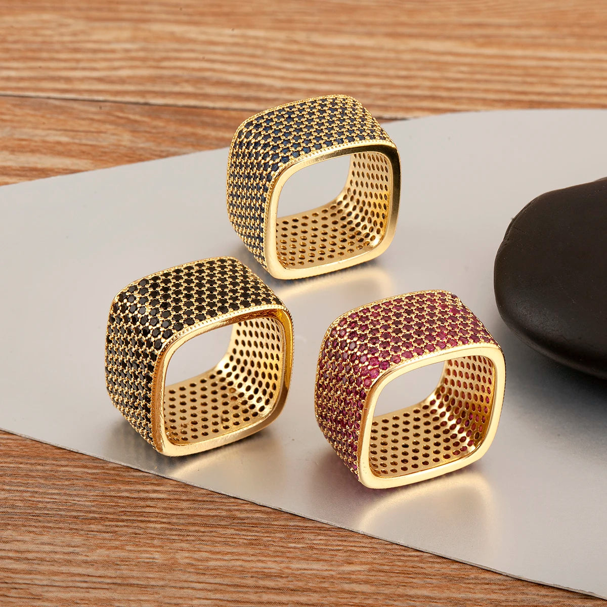 Luckacco Nidin New Trendy Square Shape Inlaid Crystal Zircon Rings For Women Men 5 Colors Choice Hip Hop Style Finger Jewelry Chic Gifts