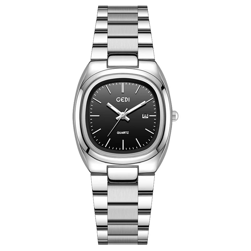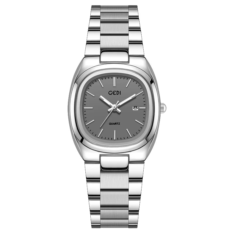 Luckacco Simple dual calendar women's watch high value solid steel waterproof watch ladies niche oval quartz watch