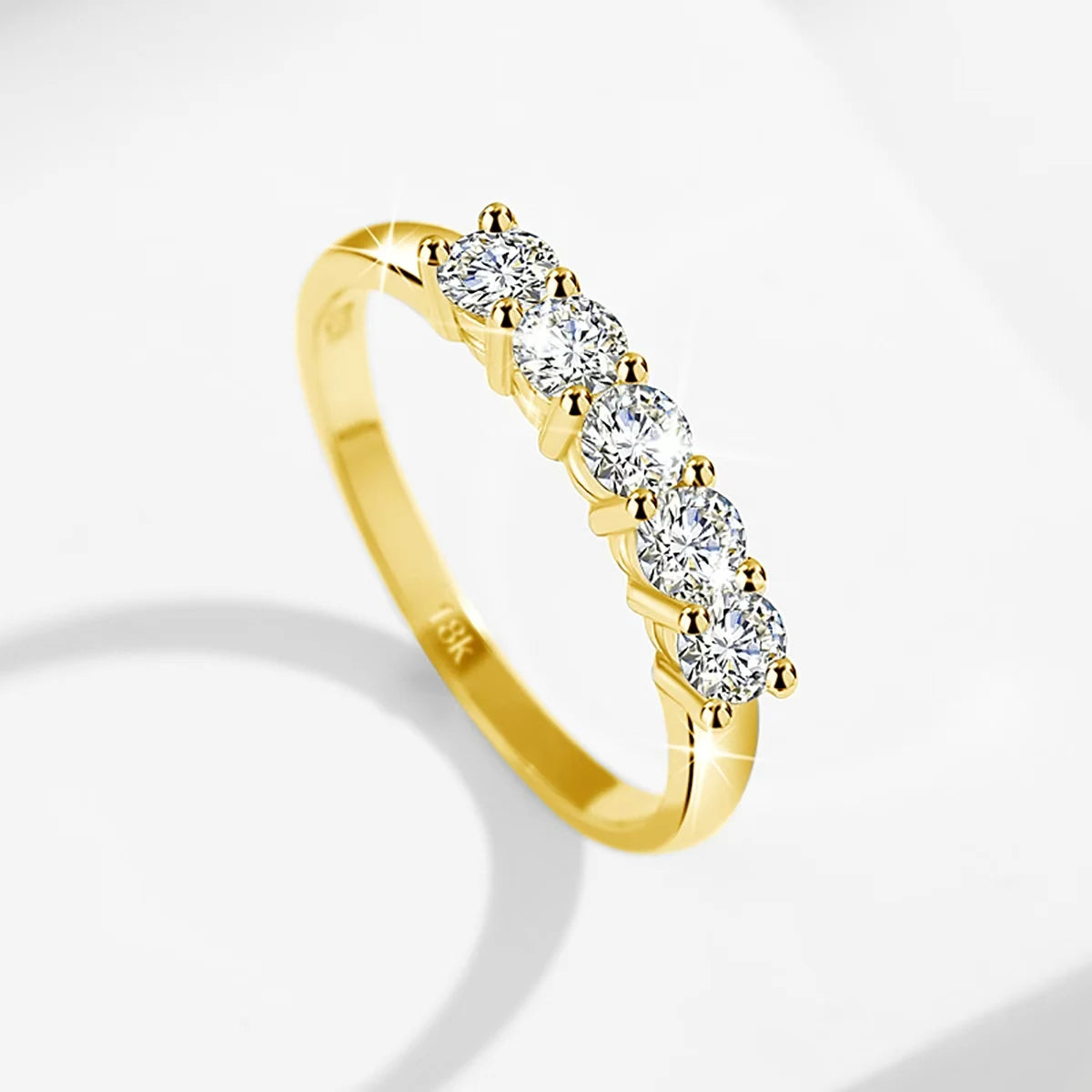 Luckacco With Certficate 18K Solid Rose Gold Ring For Women 5 Stone AU 750 Luxury Wedding Band Jewelry With Stamp Trendy Engagement Gift